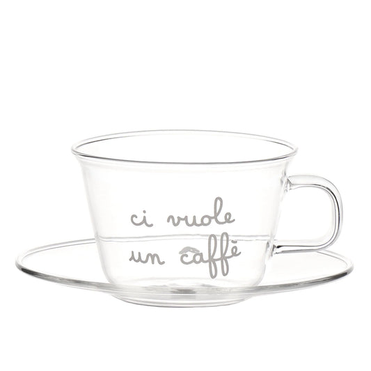 Set 2 Tazzine con piattino "Ci vuole un caffè"