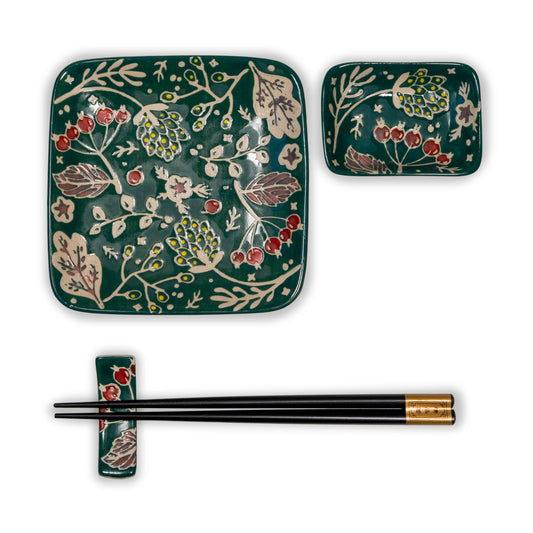 Set 2 piattini + 2 ciotoline + bacchette e poggia bacchette Pechino