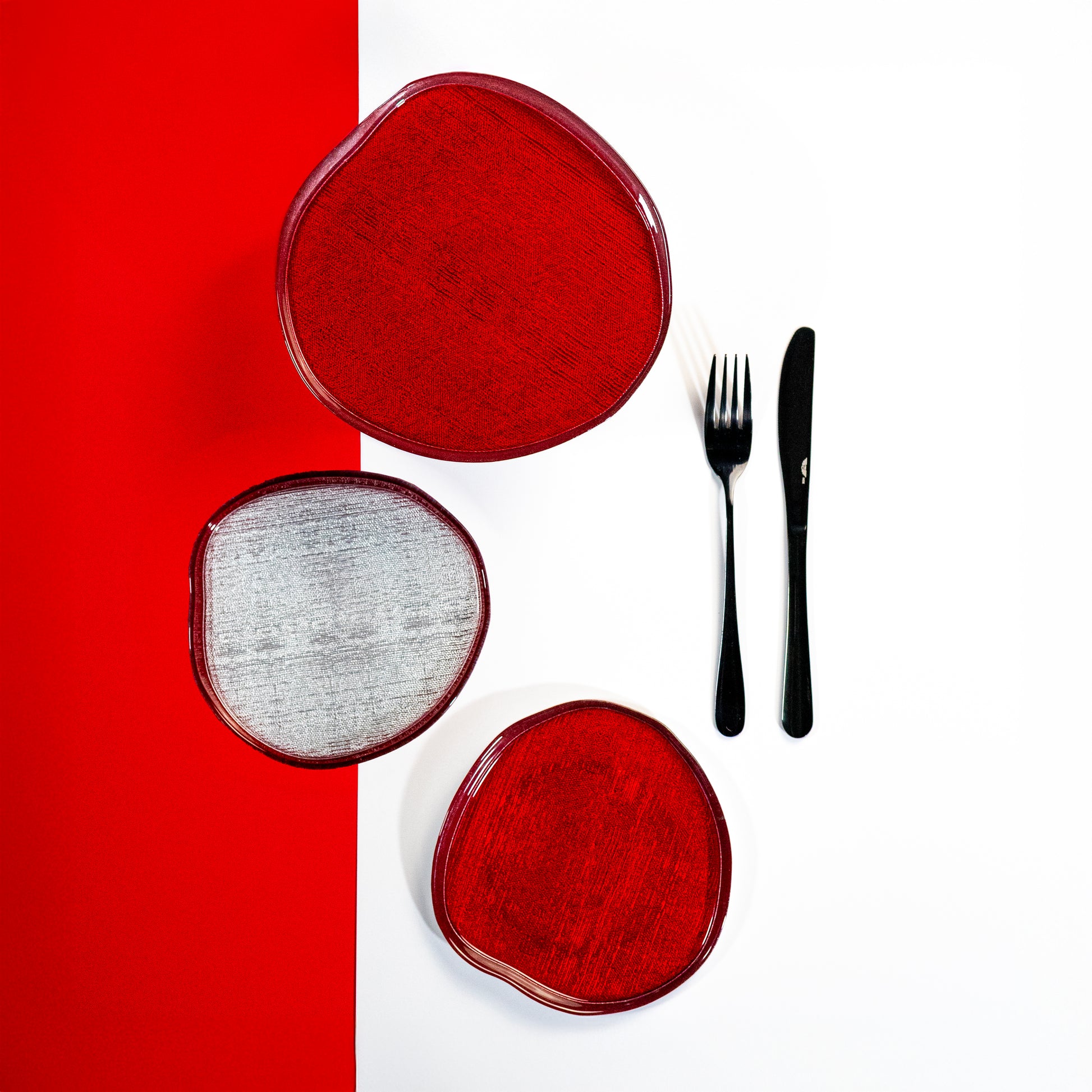 Alzata in vetro colorata. Grazie alle sue forme irregolari e ai suoi colori brillanti ti permette di servire dessert ed aperitivi in modo accattivante, rendendo la tua tavola elegante ed originale durante le feste.