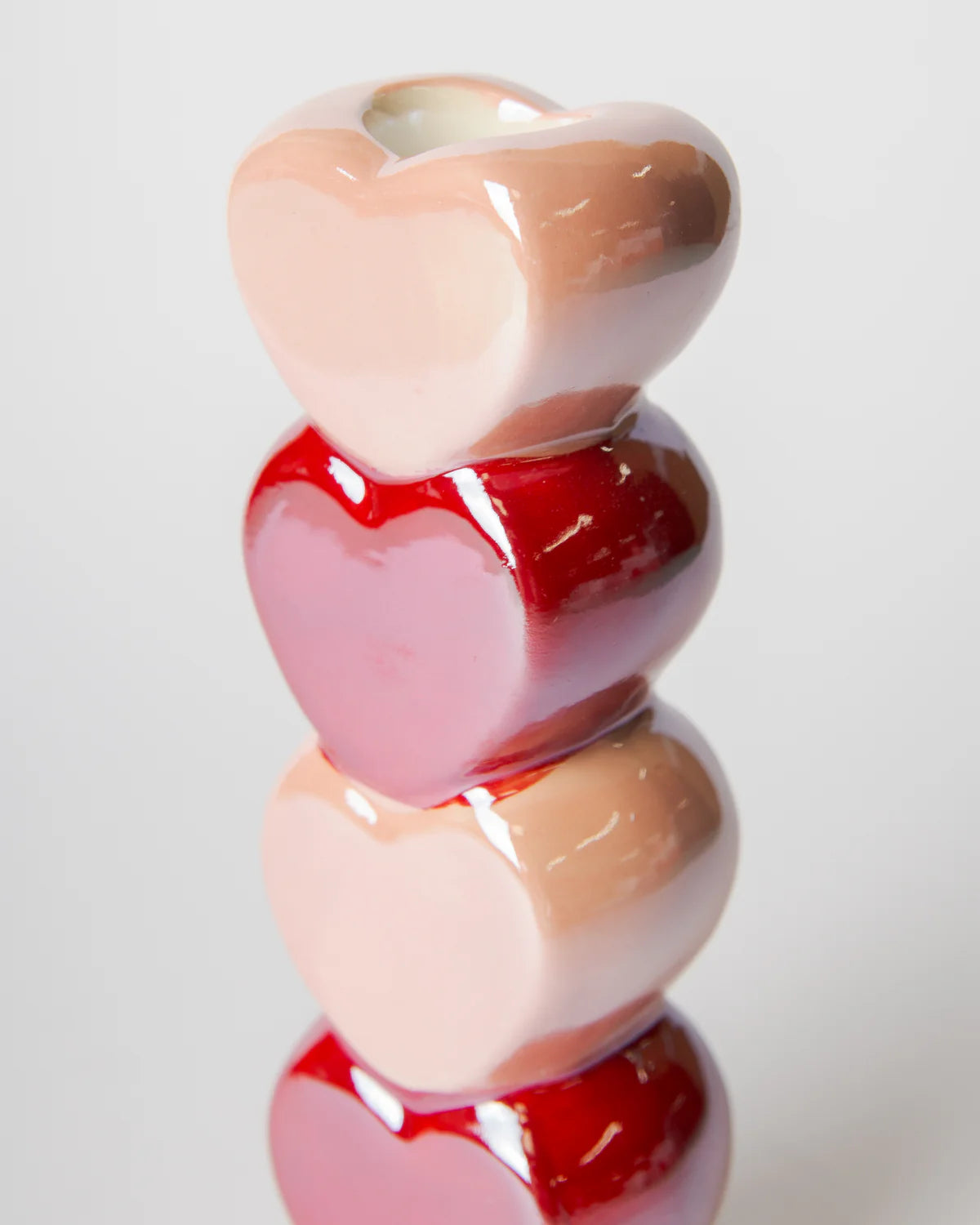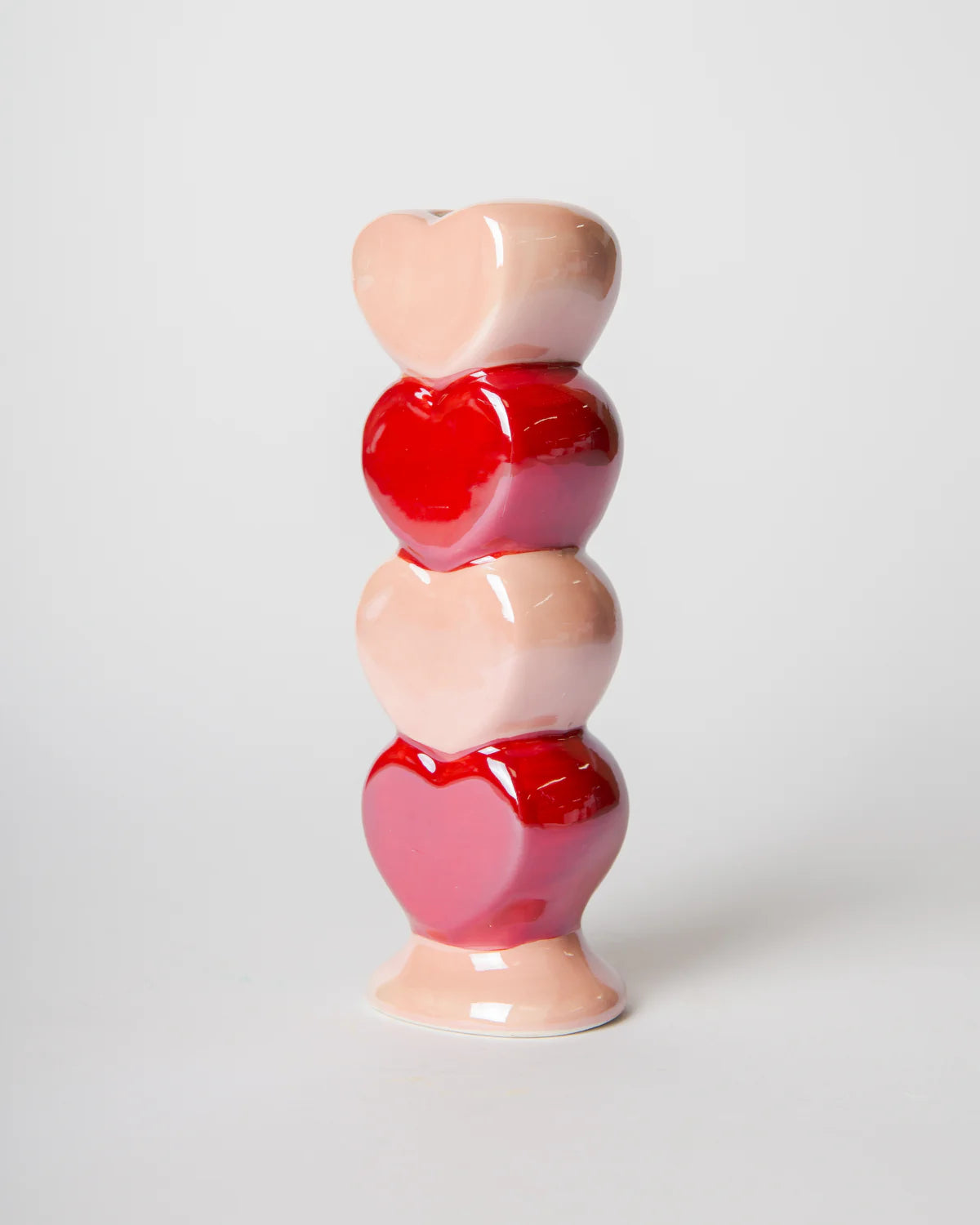 Realizzati in ceramica smaltata, i portacandele Sweet Bloom si distinguono per la loro forma a cuori sovrapposti. Disponibili in combinazioni di colori pop e femminili, accolgono candele stick per creare atmosfere accoglienti e luminose.