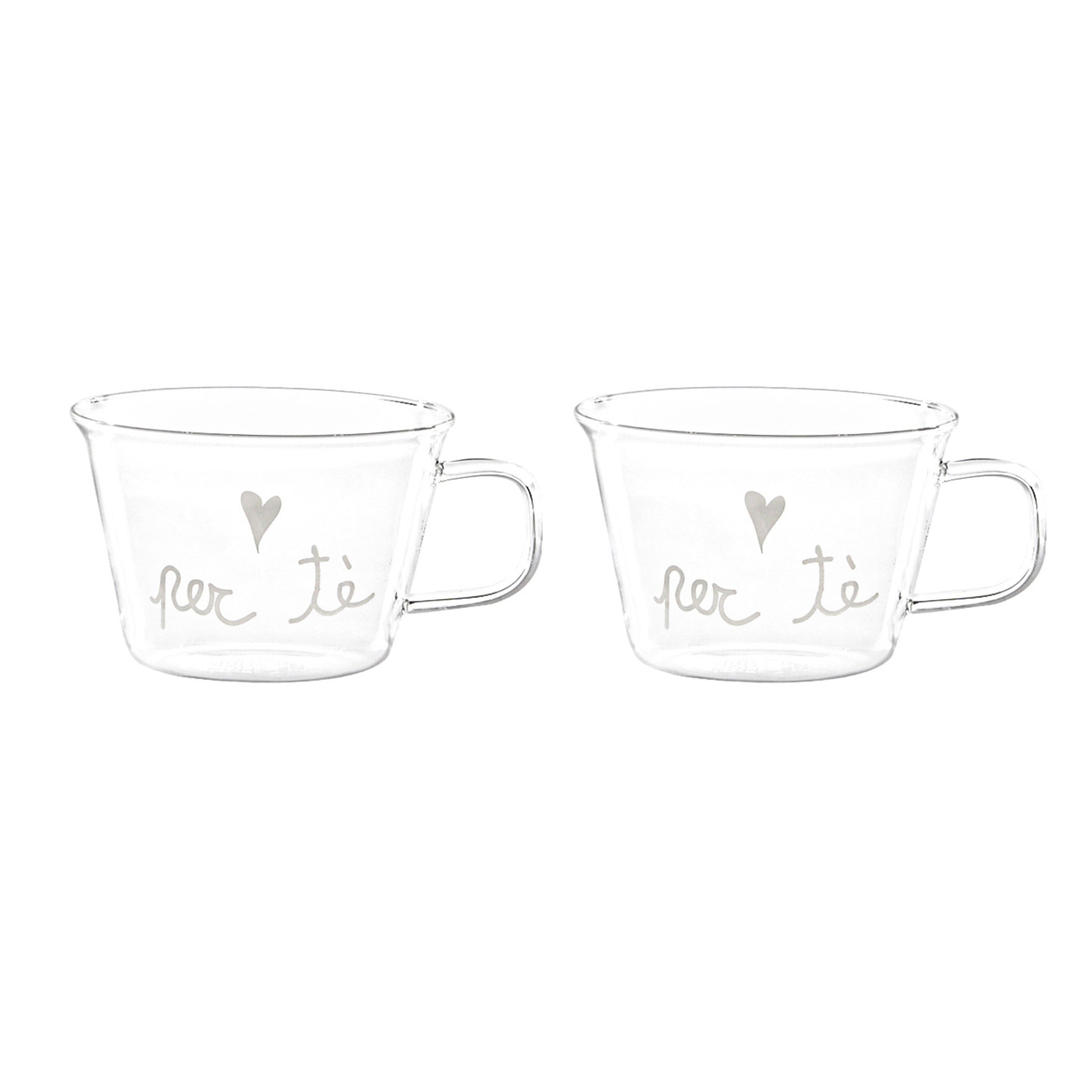 Set 2 tazze tè in vetro borosilicato decoro Per Tè.