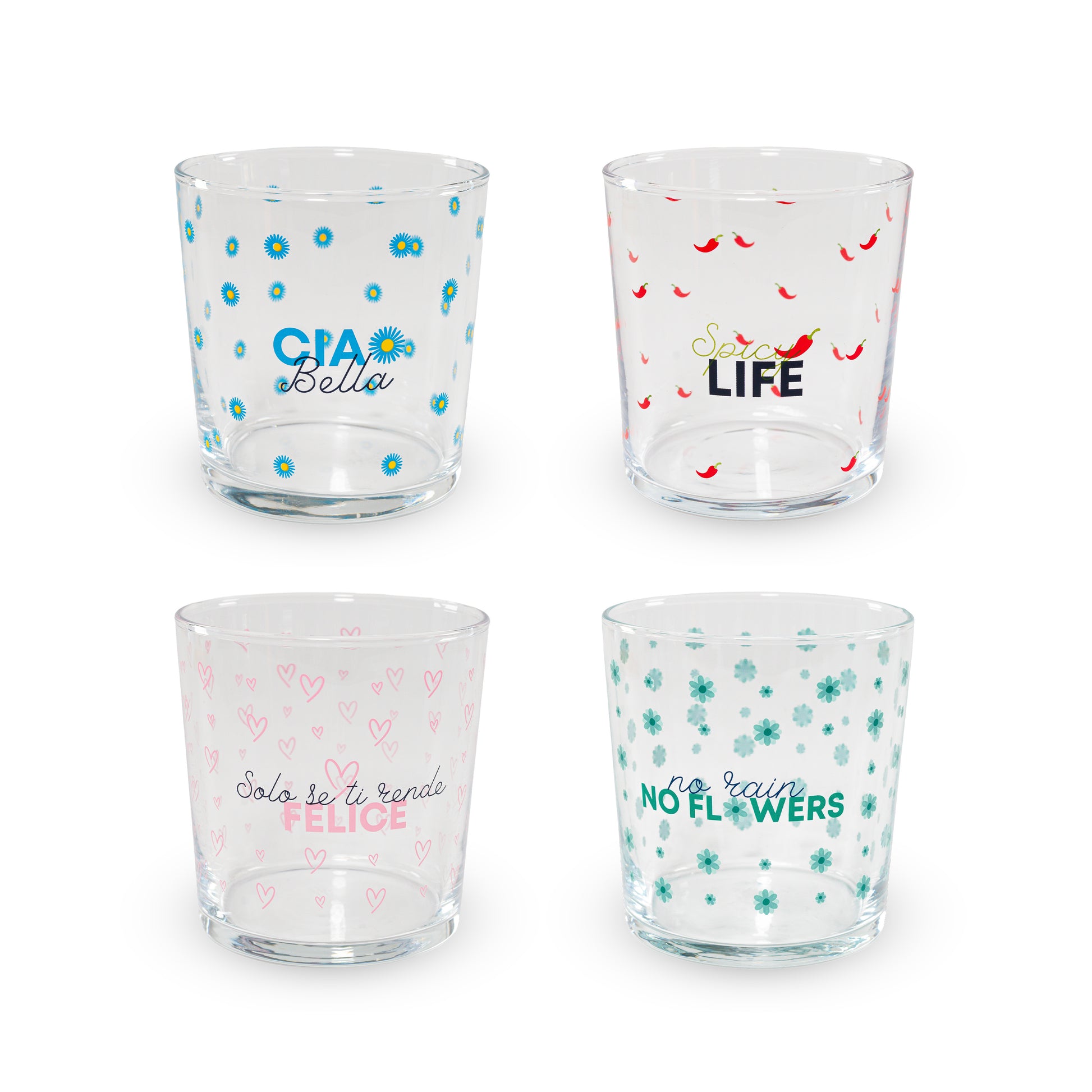 Decorati con grafiche giocose e moderne, sono perfetti per gustare le tue bevande preferite con stile durante i pasti e gli apertivi.