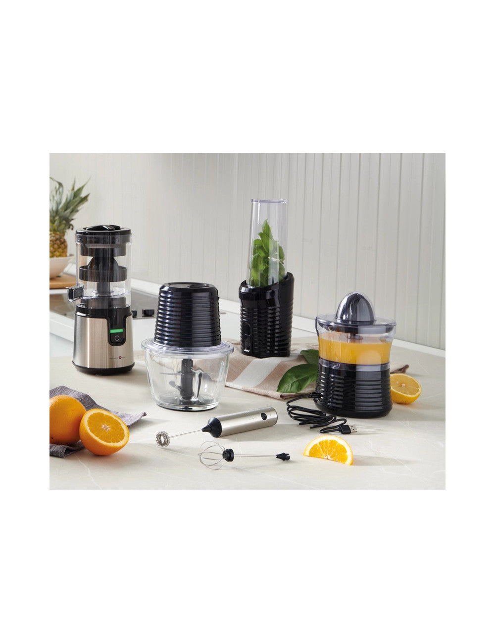 Nero fiammante, finitura lucida a base acciaio ed un moderno design super chic: "i ricaricabili" sono i nuovi arrivati della sezione Techno Brandani! Efficienti, prestanti, ricaricabili: una collezione di elettrodomestici pensata per realizzare le tue ricette senza limiti di cavo! Sì, esatto: ricarica lo spremiagrumi usando il cavo USB in dotazione. Controlla l'indicatore luminoso e, a ricarica effettuata, utilizzalo dove vuoi per preparare la tua succosa spremuta: davvero il massimo della comodità!