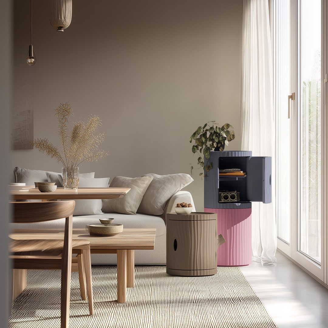 Progettato da Furf, Tronco è un contenitore multifunzionale ispirato alla forma di un tronco d'albero. Realizzato in polietilene riciclabile, funge da contenitore, offrendo una soluzione per tenere in ordine gli oggetti essenziali al suo interno o per appoggiarvi sopra oggetti.