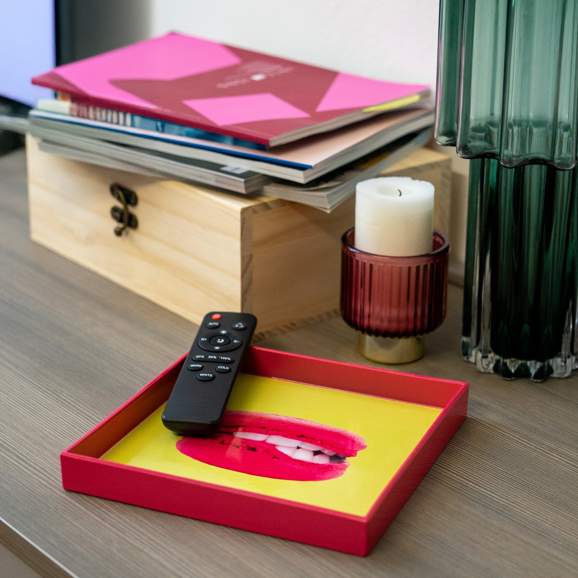 Vassoio e svuota tasche con fondo colorato. Perfetto anche come articolo decorativo. I simpatici collage doneranno allegria e originalità alla tua casa.